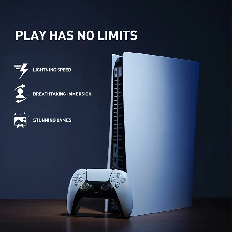 Explore uncharted virtual territories and slay dragons with this sleek Sony PlayStation 5 gaming console. The 825GB SSD allows ultra-fast load times, while 3-D audio output produces crisp acoustics. This Sony PlayStation 5 gaming console supports haptic feedback for effortless communication in multiplayer setups, and adaptive triggers allow immersive gameplay.