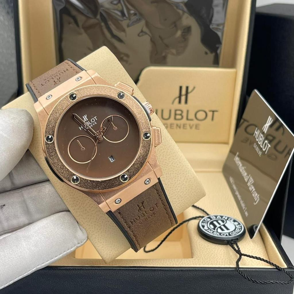 Hublot leather and rubber strap wristwatch. This watch is long-lasting and water-resistant with both leather and rubber strap attached to it. It is an analog wrist watch with working date. We also have another quality for you.