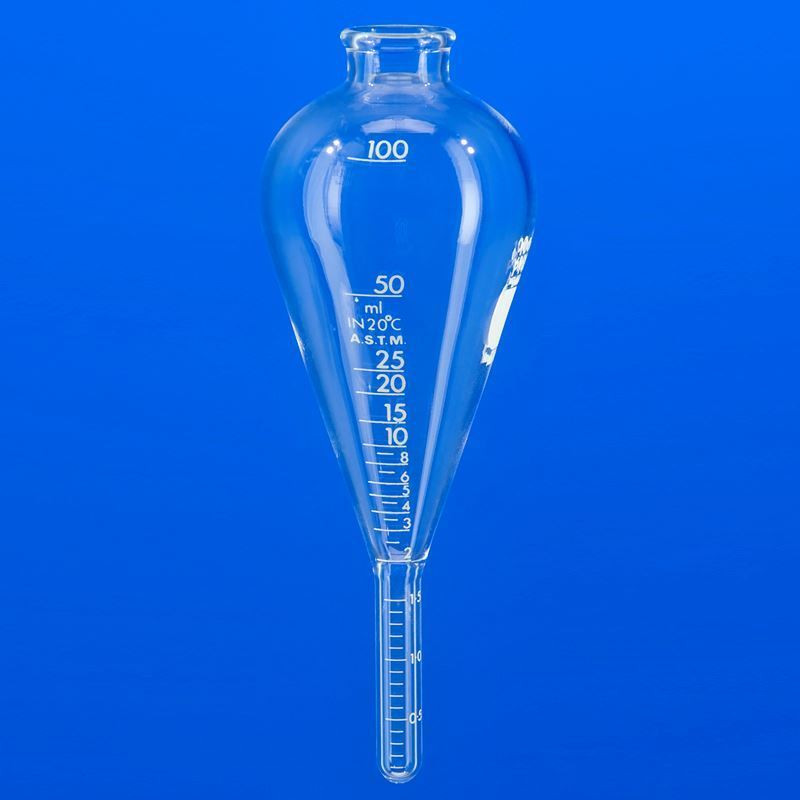 This 100 mL PYREX® pear-shaped centrifuge tubes are used for determination of water and sediment in petroleum products.